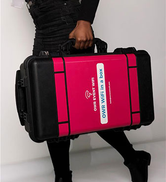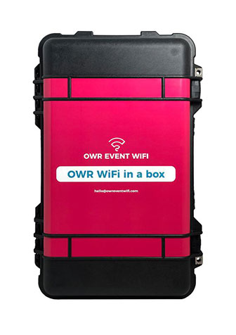 WiFi in a Box is one of our newest WiFi solutions and we’re happy to introduce it to our clients! This portable event internet can be initiated by inserting a plug into a plug point and flipping a switch. WiFi starts in 3 minutes!